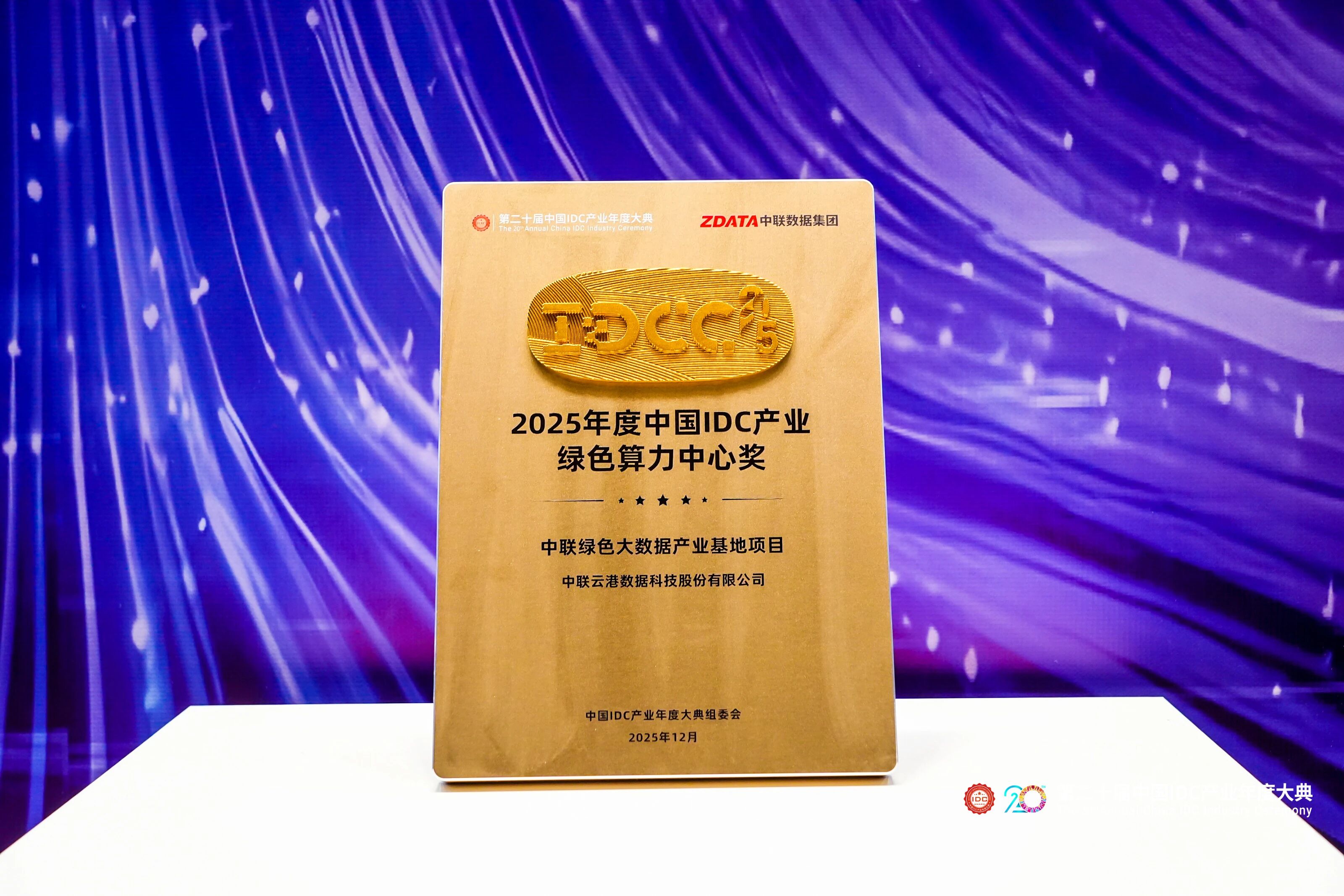 IDCC 2025年度大典|中联数据集团荣膺“绿色算力中心奖”!